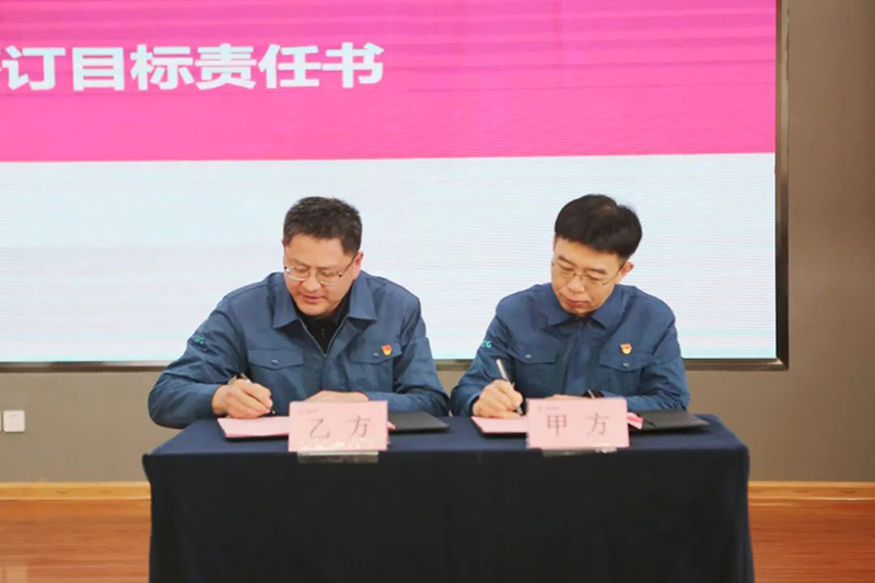 刘利锋与中材科技山东分公司董事、总经理程涛,风电材料事业部总经理刘明分别签署《目标责任书》,明确了各业务单元的重点任务和目标指标。