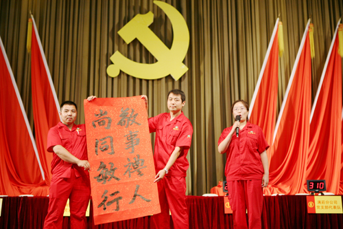 会后,举办了建党94周年知识竞赛。活动现场, 12支代表队紧张有序地答题,扣人心弦,精彩纷呈。本次知识竞赛围绕着党章、党史、厂情等内容展开,增加了理论演绎环节,打破了以往单纯的知识答题,对竞赛项目进行了改革和创新,使知识竞赛活动不仅能充分锻炼选手们的学习能力,而且还能全面展示选手们的综合素质。